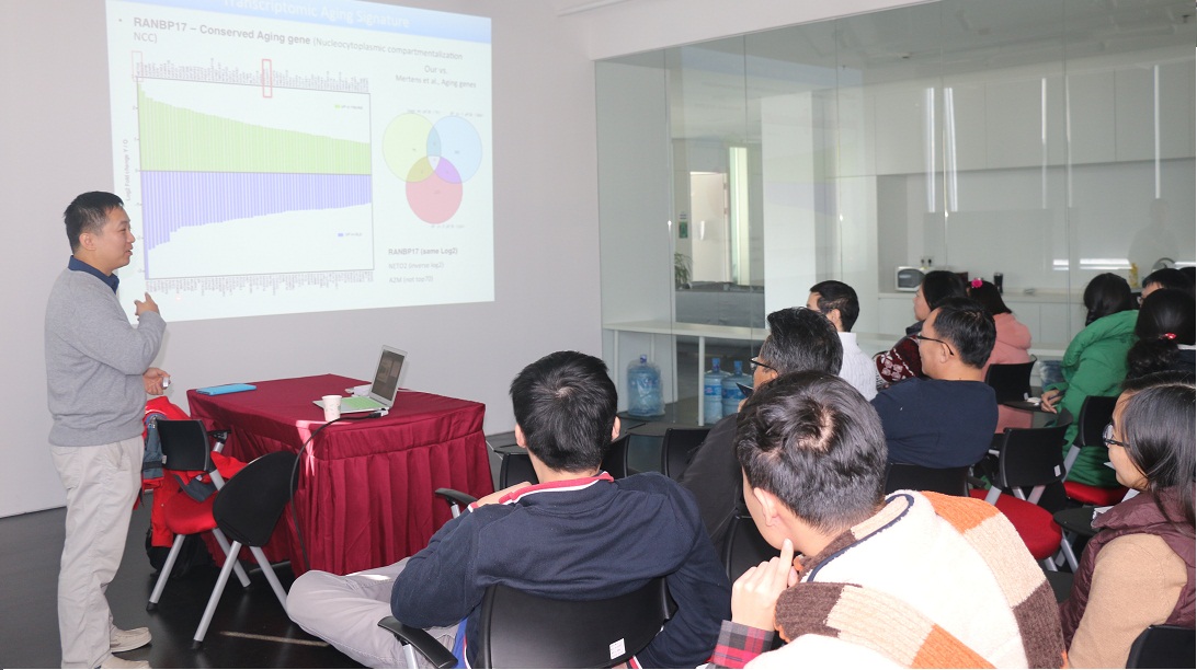 WeillMedical College of Cornell University Dr. Chao Zhang应刘南研究员的邀请,在中国科学院生物与化学研究中心进行了“Induced pluripotent stem cells for the study of cellular aging and rejuvenation”的学术报告。报告中,张博士在背景部分说明了iPSc对于神经和衰老疾病研究的重要意义,随后介绍了目前诱导性多能干细胞处理过程中的一些挑战,最后张博士引用大量文献阐述了目前通过二代测序技术在转录组、表观遗传修饰等等方面对衰老标志进行的探究。张博士专注于二代测序技术的数据分析研究,试图在结合转录组、表观遗传修饰以及更多的层面上,找到衰老相关标志。张博士的精彩报告让大家对如何通过二代测序及细胞重编程技术探究衰老标志有了深刻的认识。师生踊跃提问,张博士详细解答并与大家深入探讨交流。此次报告圆满结束。