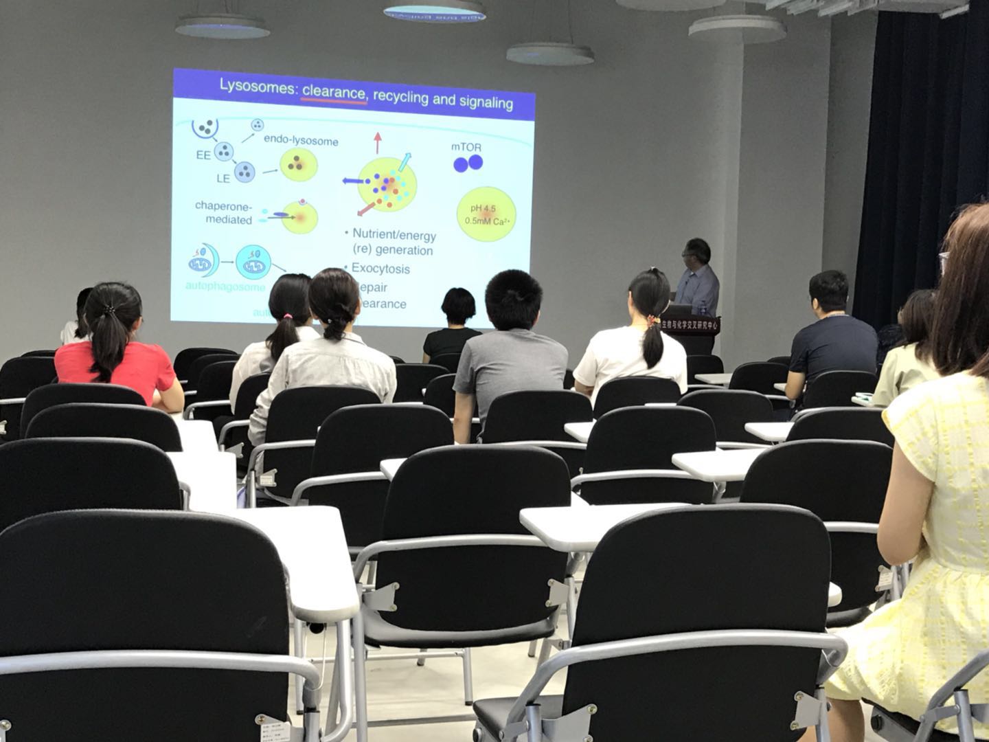 2018年6月28日,美国University of Pennsylvania, Professor of Biology, Dr. Dejian Ren应刘南研究员邀请,在中国科学院生物与化学交叉研究中心进行了题为“ Ion Channels in Lysosomal Function”的学术报告。Dr.Ren本科学习物理专业,毕业后转入生物领域进行离子通道方面的研究;近年来专注于细胞器离子通道的结构与功能,并持续高产地发表了一系列高水平研究成果,令人印象深刻。报告中,Dr.Ren揭示,细胞器Lysosome表面实际存在多种离子通道,包括Na+, K+, Cl+等离子通道,这些离子通道在感受胞内胞外环境,调控细胞营养供给,清除胞内垃圾等方面起着重要的作用。值得一提的是,一种新型的Lysosomal K+通道蛋白TMEM175,有GWAS证据指出其与神经退行性疾病的发生存在关联,这暗示着Lysosomal离子通道有可能成为治疗这种疾病的药物靶点。