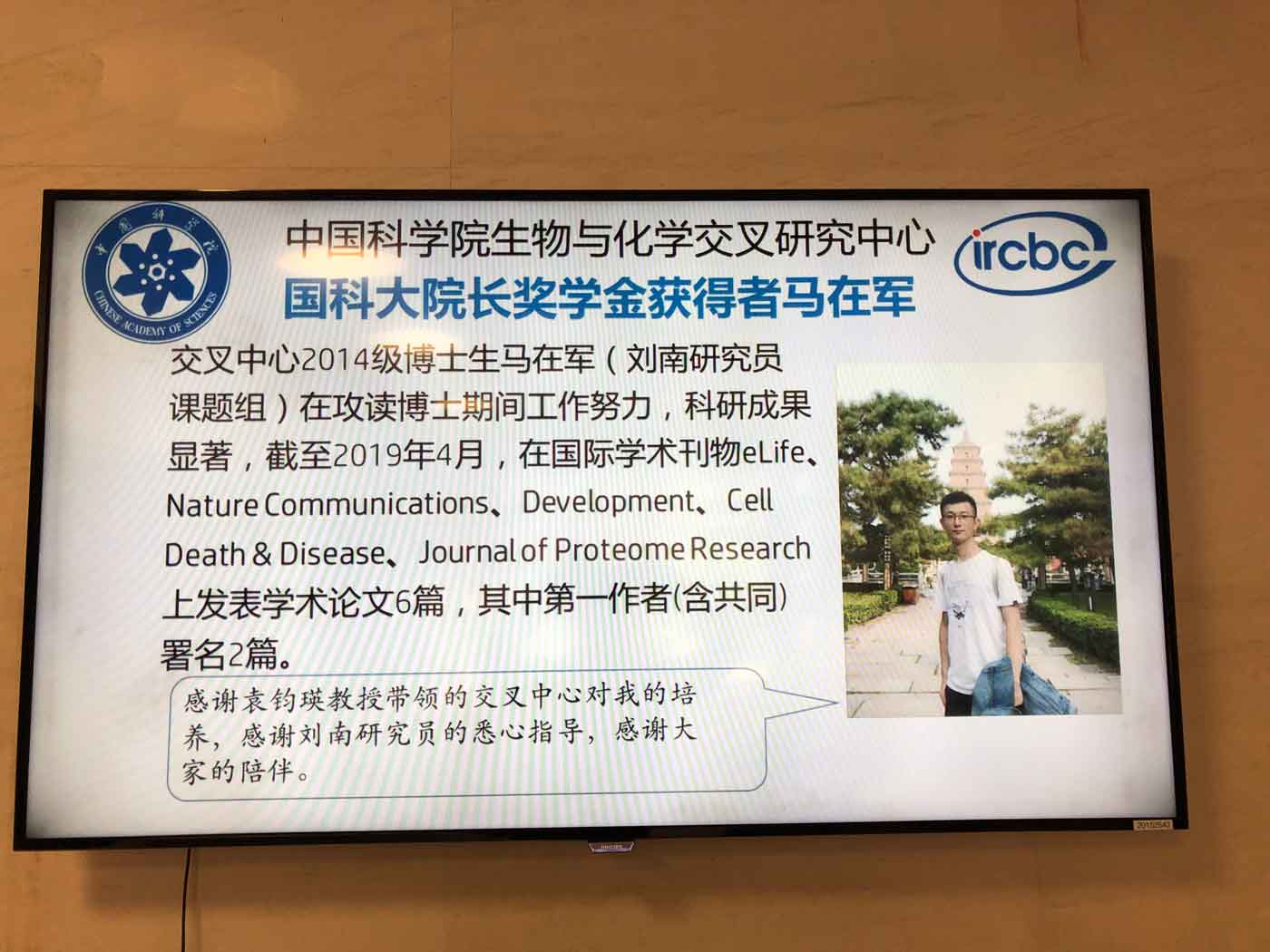 祝贺马在军博士获得中国科学院大学院长奖学金
