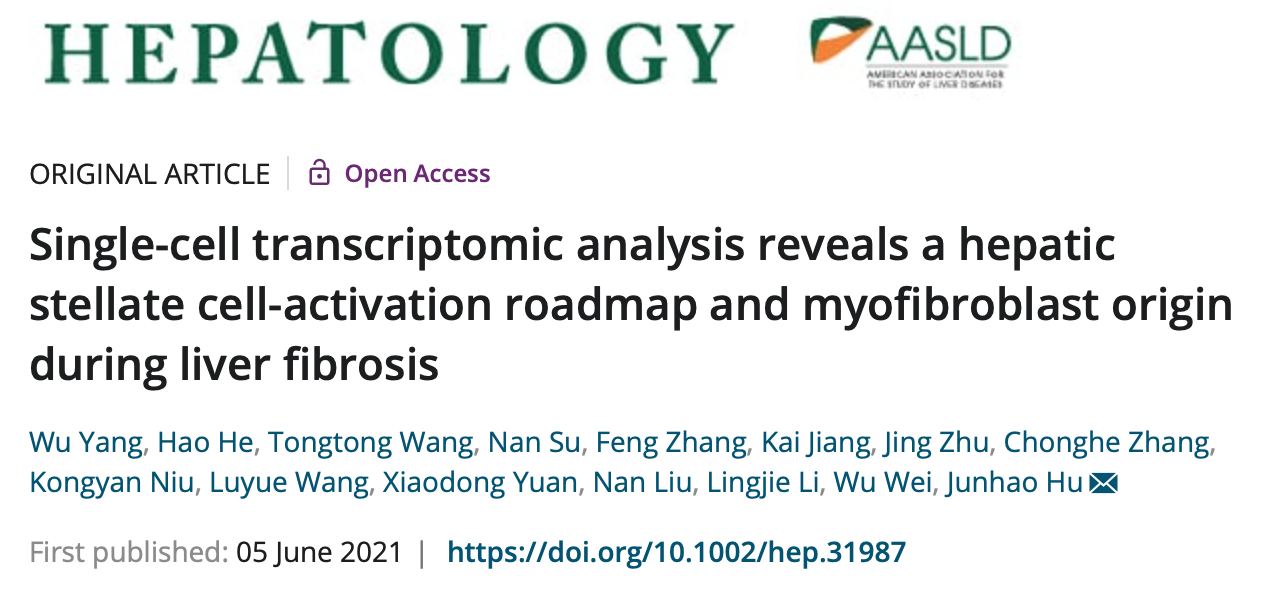 Hepatology paper Published:Single-cell transcriptomic analysis reveals a hepatic stellate cell-activation roadmap and myofibroblast origin during liver fibrosis