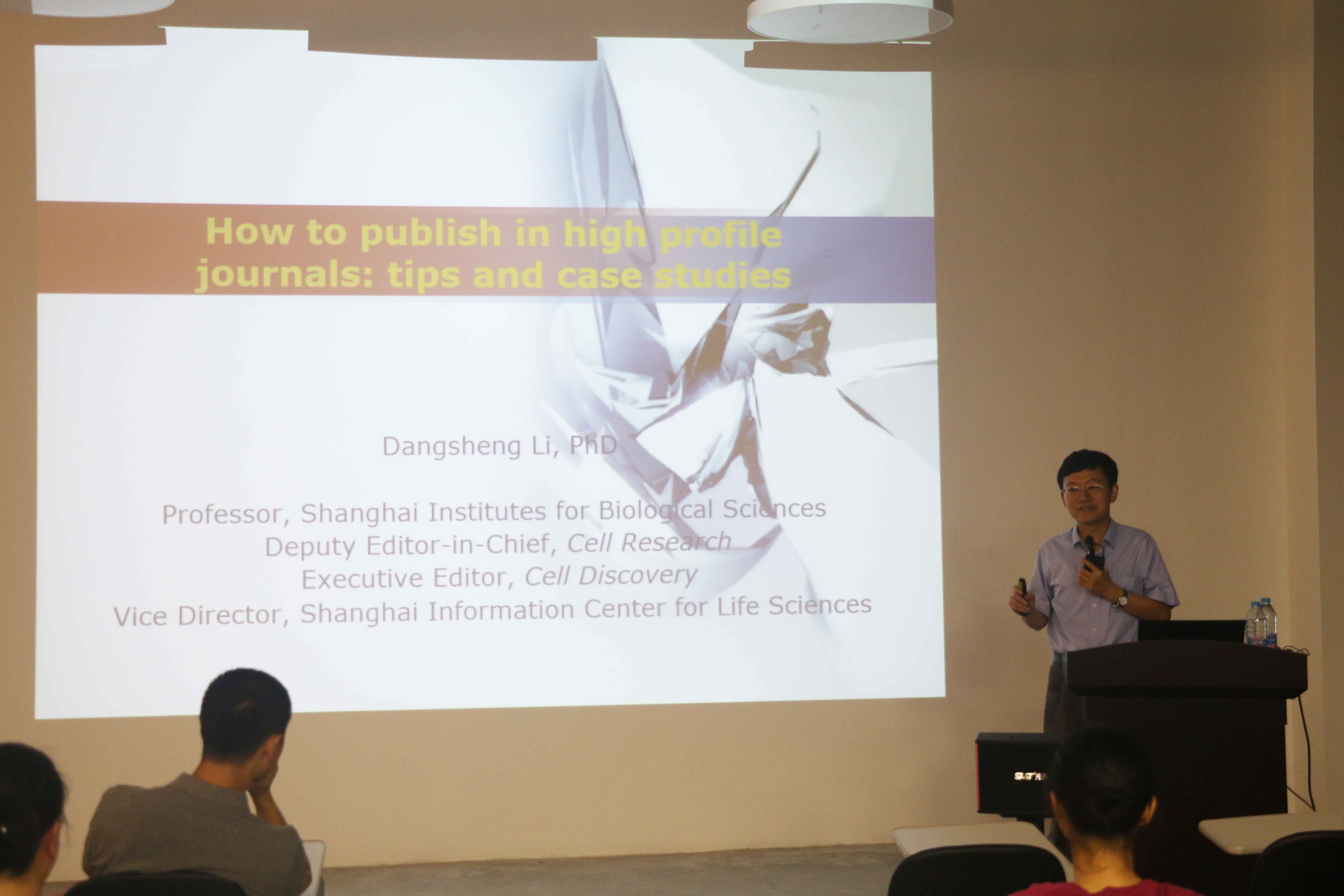 2016年7月22日中国科学院上海生命科学院研究员李党生博士访问我组及交叉中心,并做学术报告,题目为”How to publish in high profile journals”. 李党生博士现为我国自主创办的学术杂志“Cell Research”和“Cell Discovery”执行总编。在李党生博士的带领下,这两个自主期刊,尤其是“Cell Research”实现跨越式发展,在10年内,将影响因子从3一路提升至15,已成为生命科学领域的高端期刊。在发表高水平文章的要素上,李党生博士提到了:1. conceptual advance (ask a key, fundamental question); 2. solid supportive data; 3. physiological relevance。在成为合格博士的问题上,李党生博士提到了:1. 建设性思维;2. 批判性思维。 李党生博士的报告着实精彩,发人深省。